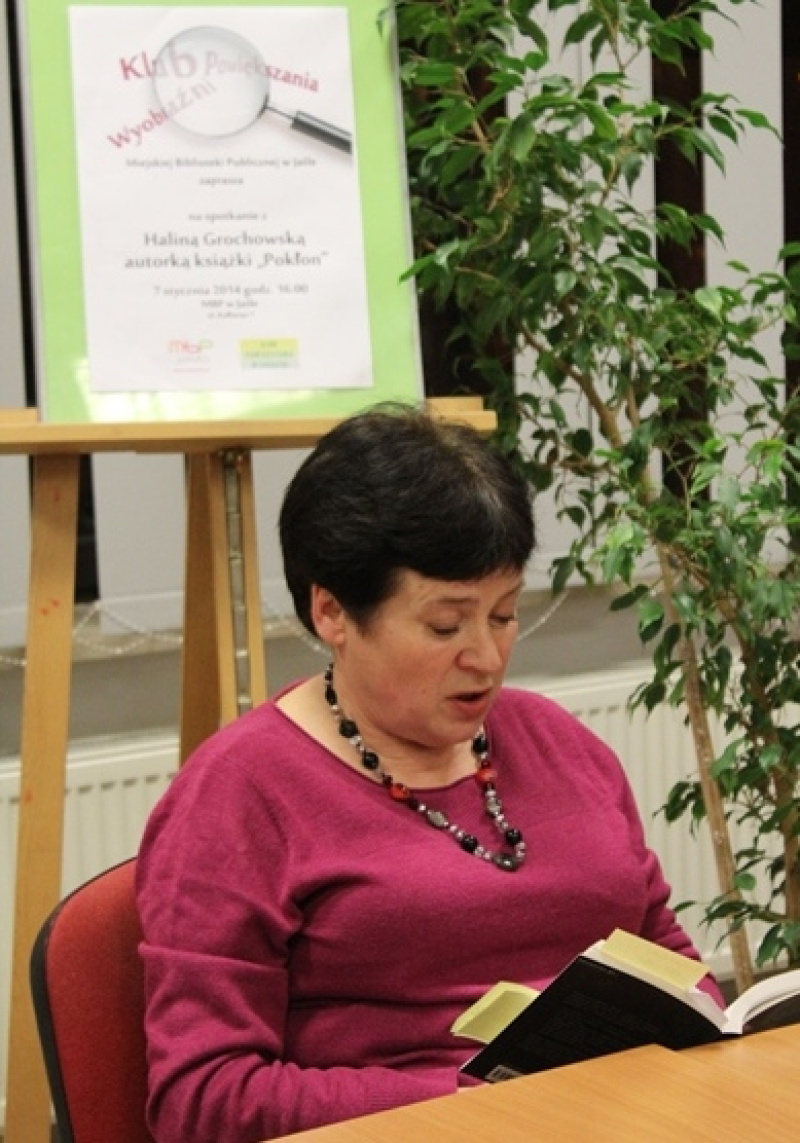 7 stycznia 2014 r. w Miejskiej Bibliotece Publicznej w Jaśle w ramach Klubu Powiększania Wyobraźni odbyło się spotkanie z Haliną Grochowską, autorką książki „Pokłon”.