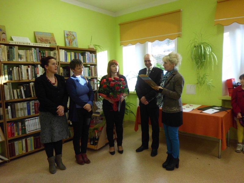 Oficjalnego powitania gości dokonała pani Mariola Huzar, dyrektor Biblioteki Publicznej Gminy Kłodzko. Przedstawiciele władz i przyjaciele biblioteki składali na ręce pani Agaty Maślanki życzenia i listy gratulacyjne. Od wójta gminy Kłodzko ogromny bukiet róż, list gratulacyjny oraz wiele ciepłych słów uznania. Był także czek finansowy o wartości 200,00 zł brutto od dyrektora Biblioteki. Koleżanki bibliotekarki gratulowały symbolicznymi upominkami.