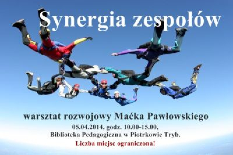 Biblioteka Pedagogiczna w Piotrkowie Trybunalskim zaprasza nauczycieli, uczniów, studentów, a także wszystkich tych, których interesuje tematyka rozwoju osobistego na warsztat rozwojowy Synergia zespołów . Uczestnicy będą mieli okazję spróbować swoich sił w grach biznesowych skoncentrowanych na relacjach grupowych i pracy zespołowej. Każdy uczestnik przekona się o tym, jak sam funkcjonuje w grupie. Będziemy wymieniać się doświadczeniami oraz analizować, jakie zachowania przeszkadzają, a jakie wzmacniają zespoły w realizacji swoich celów.