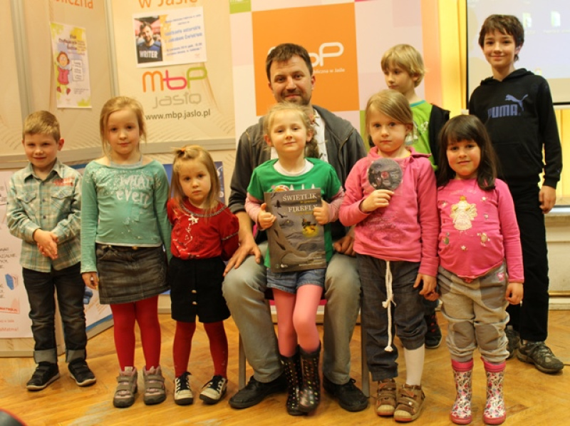 Spotkanie z Jakubem Ćwiekiem odbyło się w związku z przypadającymi w kwietniu obchodami Międzynarodowego Dnia Książki dla Dzieci i Światowego Dnia Książki i Praw Autorskich.