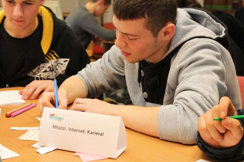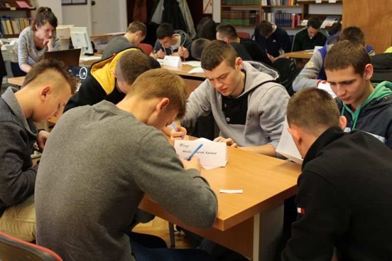 W drugiej części uczestnicy wzięli udział w warsztatach „Laboratorium kariery” podczas których dowiedzieli się czym jest kariera i jakie są etapy jej planowania. Zdobytą wiedzę sprawdzali układając swój indywidualny plan kariery zawodowej – marzenia o byciu informatykiem, mechatronikiem czy podróżnikiem przekładali na dobrze sprecyzowany cel zawodowy i kroki konieczne do jego realizacji.