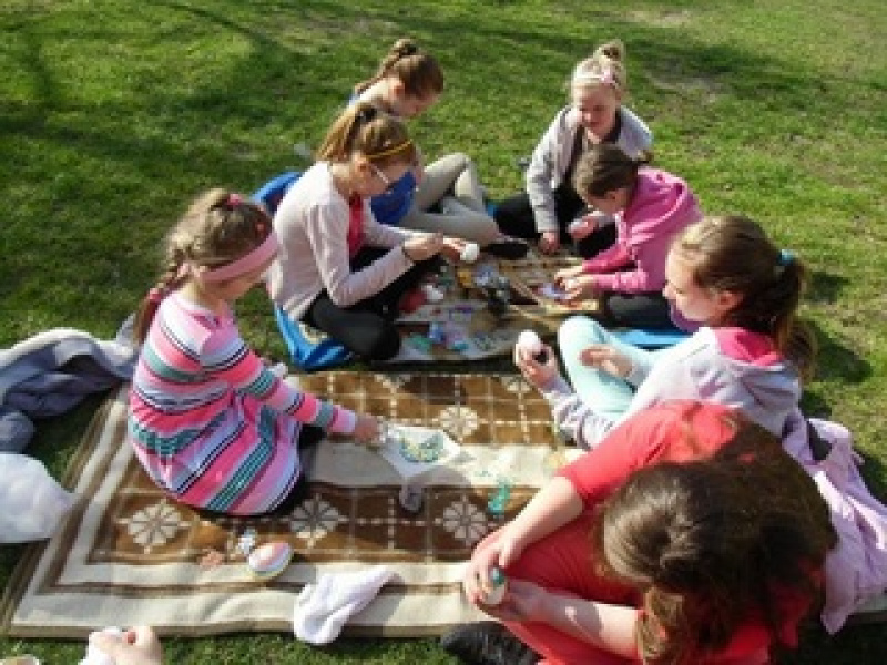 Tym razem do udziału w warsztatach zaproszono dzieci z klasy 1,2 i 3 wieluńskich szkół podstawowych. 11, 14 i 16 kwietnia mali uczestnicy zajęć, wykonywali pisanki inspirowane techniką enkaustyczną. Kredką woskową, rozgrzaną nad płomieniem świecy, dzieci "tworzyły wzór" na styropianowym jajku. Wszystko działo się pod czujnym okiem Pani Marleny i Anity, które służyły pomocą i radą.