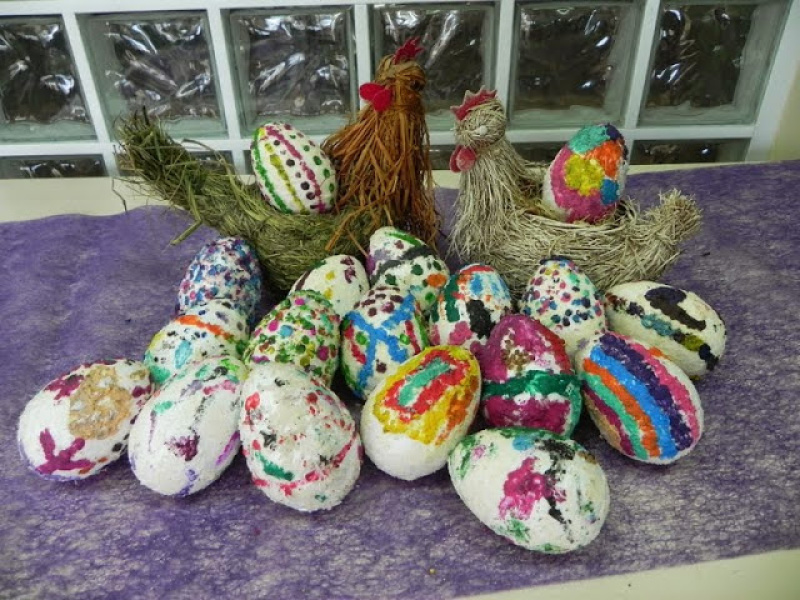 W dniach od 04.04.2014 r. do 14.04.2014 r. w Fili Bibliotecznej w Masłowicach odbyły się warsztaty Wielkanocne. Przez siedem dni dzieci spotykały się aby wspólnie i miło spędzić czas, na tworzeniu świątecznych ozdób na stół i do koszyczka. Uczestnicy warsztatów za pomocą szpilek przymocowali kolorowe cekiny do styropianowych jajek, kurek oraz zajączków. Powstały przepiekne kolorowe świąteczne rekwizyty.