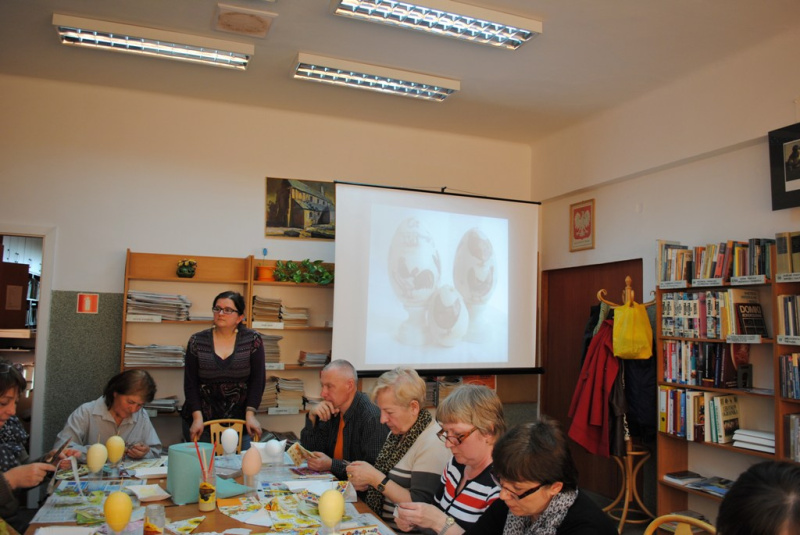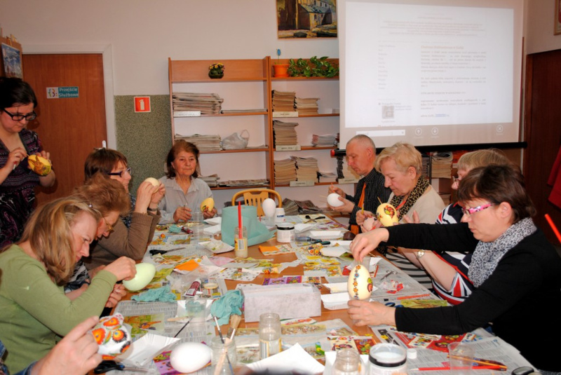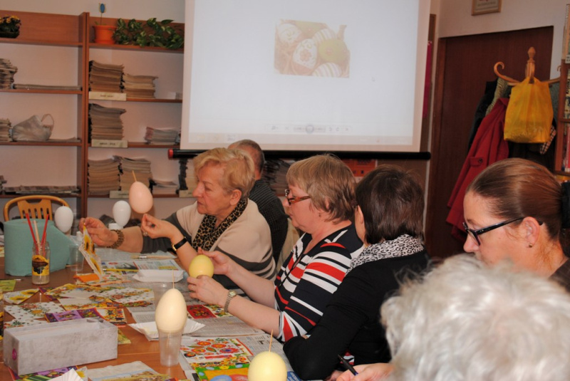 Polega ona na przyklejaniu na odpowiednio przygotowaną powierzchnię wzoru wyciętego z papieru lub serwetki papierowej a następnie kilkakrotnym lakierowaniu. Tym razem powstało tą metodą wiele pięknych pisanek wielkanocnych. W trakcie spotkania można było również dowiedzieć się, gdzie szukać wzorów i inspiracji do tworzenia wyrobów rękodzielniczych tą metodą, oraz materiałów potrzebnych do zdobienia.