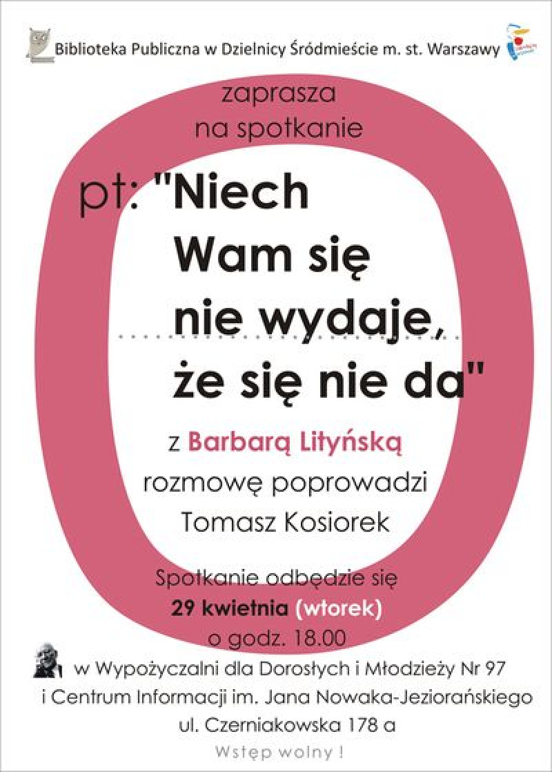 Rozmowę z Barbarą Lityńską poprowadzi Tomasz Kosiorek.