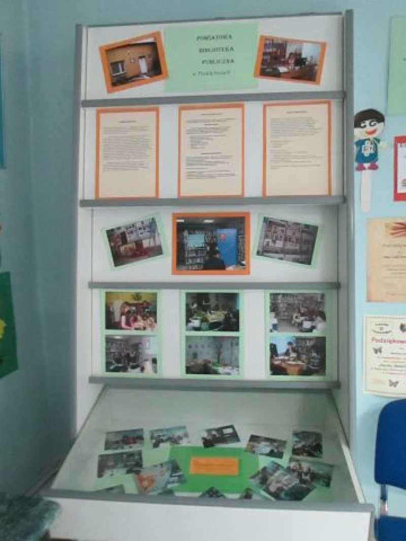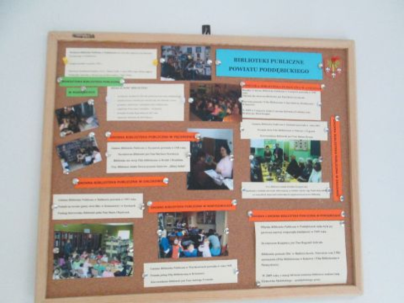 - „W zaciszu biblioteki …" - wystawka o Powiatowej Bibliotece Publicznej w Poddębicach. Pracownicy Biblioteki postanowili przybliżyć Czytelnikom swoje miejsce pracy i przygotowali wystawę o swojej bibliotece. Można na niej obejrzeć zdjęcia z różnorodnych imprez kulturalnych organizowanych w bibliotece (spotkań ze znanymi ludźmi, lekcji bibliotecznych, wizyt przedszkolaków czy tematycznych wystaw). Odwiedzający mogą zapoznać się z historią biblioteki powiatowej, jej strukturą oraz zbiorami.