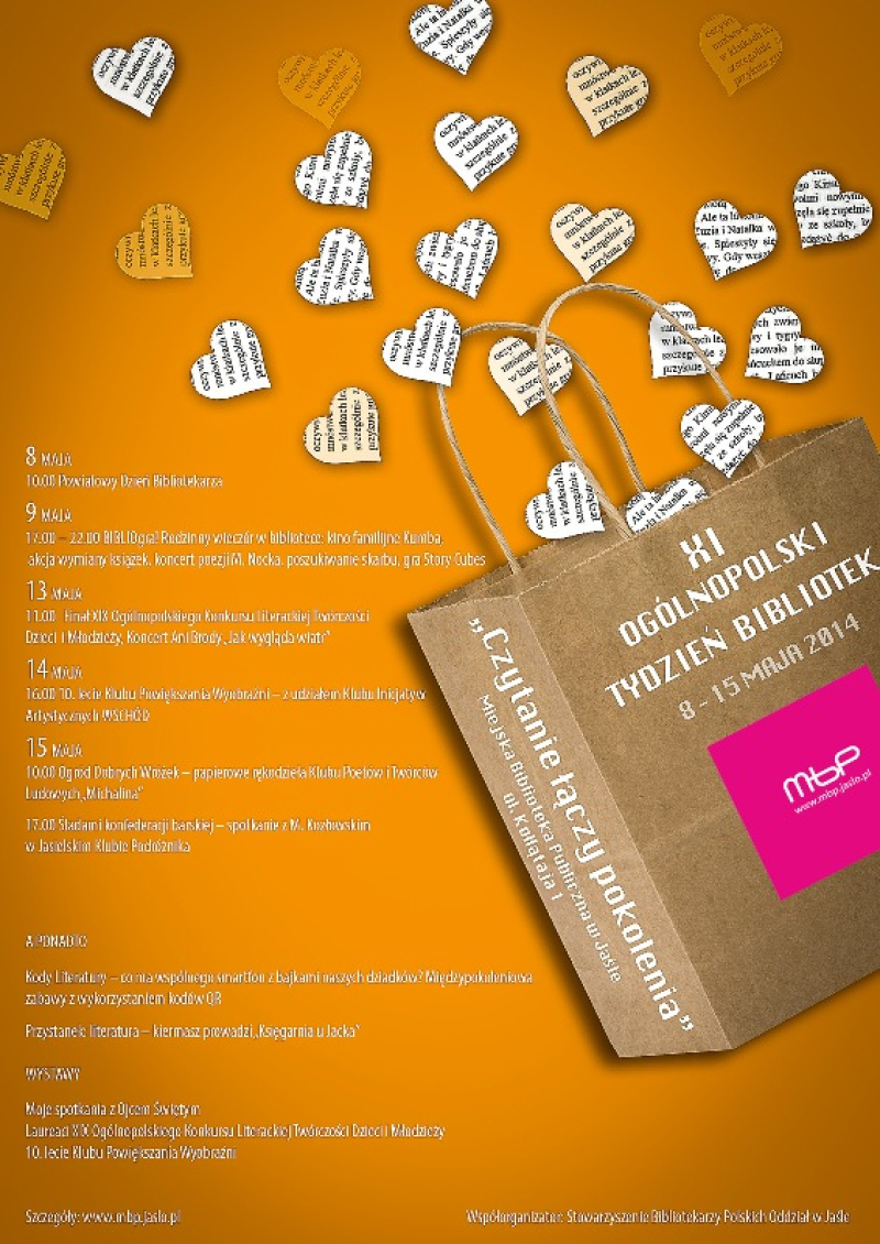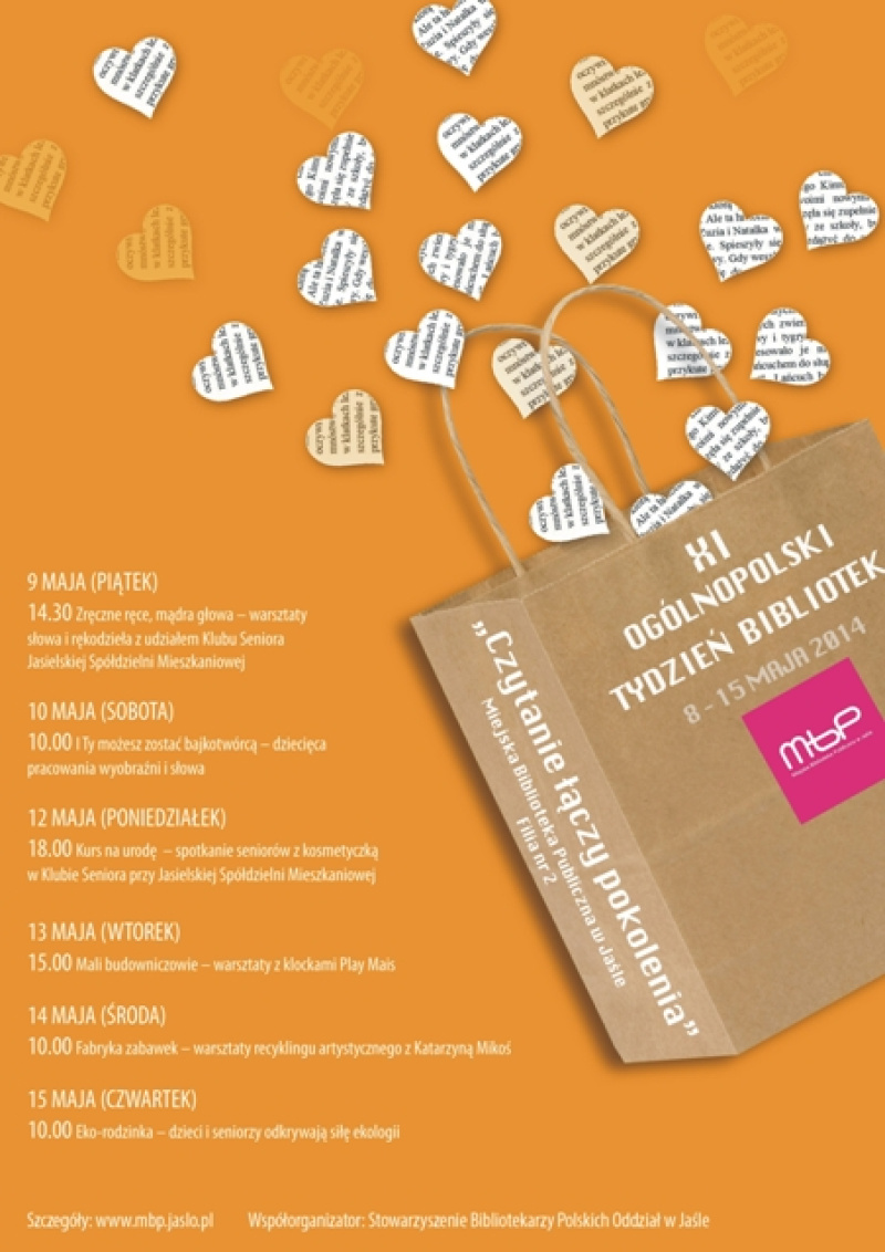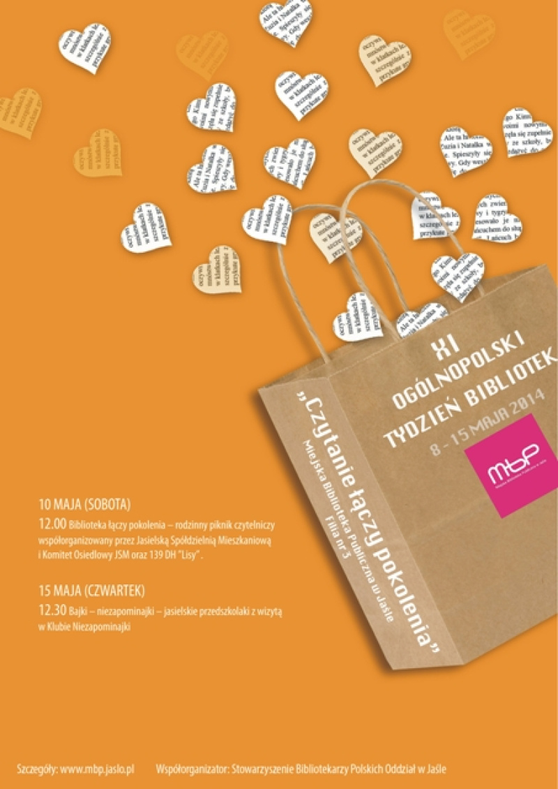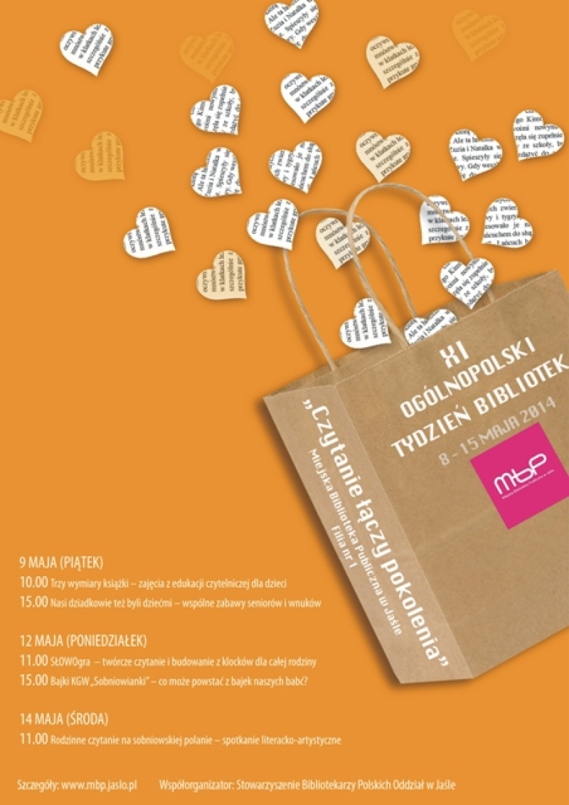 Dzieci, rodzice, dziadkowie, wspólna zabawa i … Biblioteka! „Czytanie łączy pokolenia” – to hasło przewodnie imprez, spotkań i aktywności na które zaprasza Miejska Biblioteka Publiczna w Jaśle. W dniach 8 – 15 maja, z okazji XI Ogólnopolskiego Tygodnia Bibliotek, czekamy z bogatą ofertą dla czytelników w każdym wieku.