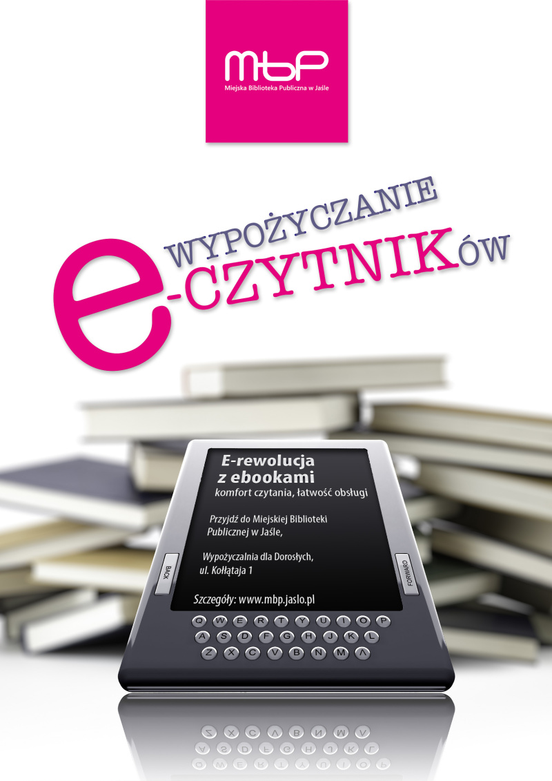Setki książek w jednym miejscu, komfort czytania i technologia przyjazna ekologii. Miejska Biblioteka Publiczna w Jaśle zaprasza do skorzystania z nowej usługi – wypożyczania e-czytników, które umożliwiają lekturę publikacji w formie elektronicznej. E-czytniki można wypożyczać od 6 maja 2014 r. w Wypożyczalni dla Dorosłych, ul. Kołłataja 1.