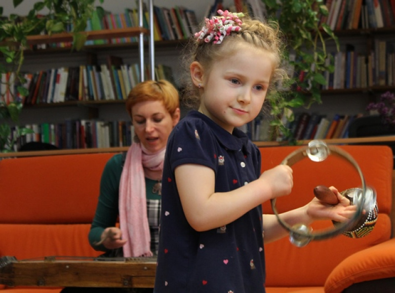Z pomocą artystek i mam dzieci wyczarowały wróżki – Gruszkę, Muszkę, Holy i Różę, które towarzyszyły im przez całe spotkanie – pomagały w zapamiętywaniu słów piosenek, wymyślaniu własnych zwrotek, odnajdywaniu rytmu oraz tworzeniu rymów i choreografii. Każdy miał okazję spróbować gry na skrzypcach, cymbałach, bębenkach i tamburynach, zamienić parasole na wirujące truskawki i pomarańcze oraz przymierzyć kapelusz elfa.