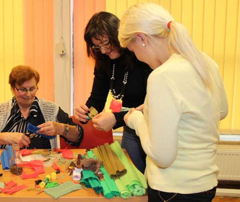 Spotkanie adeptów papierowego rękodzieła z krepiny z Marianną Romanek i Teresą Macek zaowocowało mnóstwem dobrych wrażeń płynących z głośnego czytania, wymiany pozytywnych myśli oraz wspólnego zaangażowania w ukwieceniu biblioteki. Członkinie klubu niczym dobre wróżki zaczarowały młodzież żywym słowem oraz przekazały swoją pasję. Dzięki temu każdy uczestnik warsztatów przekonał się w jaki sposób odwzorowywać to, co nas otacza i przeniósł się do kwiecistego ogrodu, w którym zakwitły maki, chabry