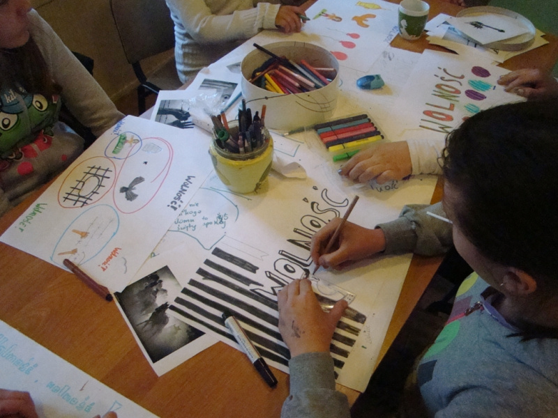 Na początku uczestnicy wysłuchali utworu Marka Grechuty pt. „Wolność” oraz bajki pt. „Aleksander i mechaniczna mysz” i na podstawie tych tekstów zastanawiali się co może być tematem zajęć. Następnie wspólnie tworzyliśmy definicje „wolności”, którą każdy rozumiał na swój sposób.