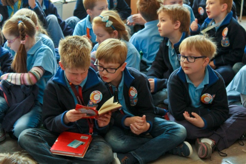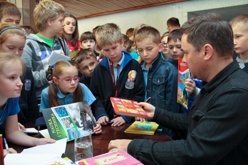 Do świata Kuby i Buby, Detektywa Pozytywki czy Kacpra z popularnej „Kacperiady” przeniósł dzieci Grzegorz Kasdepke, autor książek o słynnej gromadce znanych i lubianych bohaterów. Najmłodsi dowiedzieli się skąd wzięły się sympatyczne postaci w opowiadaniach autora, dlaczego powstały romanse dla przedszkolaków i wreszcie, co łączy autora z tytułowym Kacprem z serii opowiadań dla łobuzów i nie tylko. Nie obyło się bez pytań jak powstają śmieszne opowiadania, skąd inspiracje do pisania i którą ze swoich książek autor lubi najbardziej. Dzieci przekonały się także, że czytanie i wiedzy zdobywanie to droga do realizacji marzeń. Skandując i pokazując słowa wyliczanki przez moment stały się dobrym kucharzem, słynnym piłkarzem, zdolną baletnicą, utalentowaną malarką i wesołą kwiaciarką.
