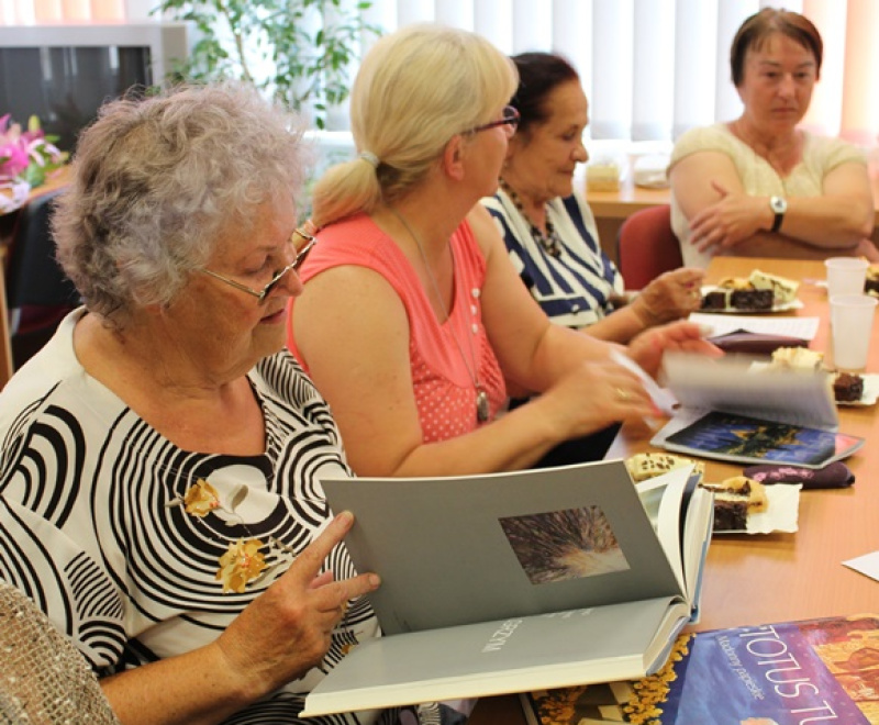 Rozmowy dotyczyły też obrazów, wizerunków świętych. Poetka i malarka Maria Słowik opowiadała o trudnej sztuce malowania twarzy, objaśniła jak ważne są oczy w portretach. Poetki podziwiały pięknie wydane albumy o Janie Pawle II dostępne w Czytelni Głównej MBP w Jaśle.