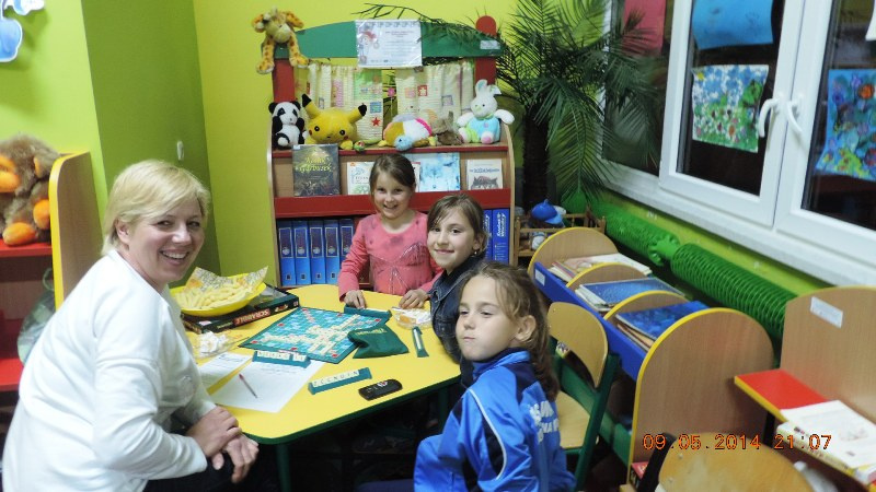 Potem panie bibliotekarki Małgosia i Bogusia dzieliły pysznym tortem książką, kawą i herbatką. I okazało się, że większość czekała z zapartym tchem na rozgrywki scrabble. Przy planszach zasiadło piętnaście osób w różnym wieku, w tym gościnnie pani Mariola Huzar. Do wzięcia były dwa tytuły mistrzowskie oraz nagrody rzeczowe według wyboru dla każdego uczestnika. Cztery główne nagrody stanowiły: odkurzacz samochodowy, namiocik domek, ekspander sprężynowy i grill plenerowy. Tak to się skończyło: