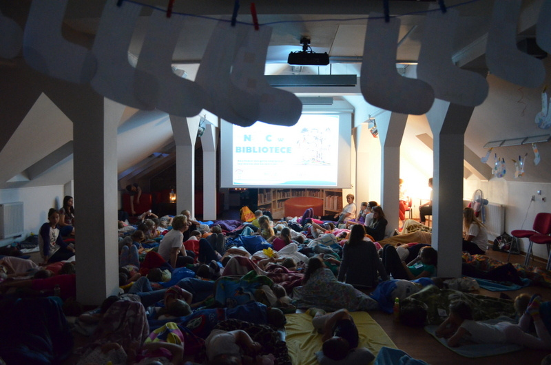 Tak było i tym razem, kiedy w piątkowy wieczór, 13 czerwca, wołomińska biblioteka wypełniła się dziećmi. Wspólnie z nimi oraz młodzieżą z wolontariatu „Otwarte serce”, zamierzaliśmy znaleźć odpowiedź na pytanie: gdzie podziały się zagubione podczas prania skarpetki? W rozwiązaniu tej zagadki nieocenioną pomocą stała się książka „Niedoparki”, której autorem jest Czech, Pavel Šrut. Jak zwykle uczestnicy „Nocy w Bibliotece” przynieśli ze sobą koce i śpiwory, aby wygodnie rozłożyć się w sali konferencyjnej biblioteki i wysłuchać interesującej opowieści o książce i jej bohaterach, którymi są niezwykłe stworki, żywiące się skarpetkami. Zamieszkują one ludzkie domy, upodabniają się do ich właścicieli, a także posiadają wiele interesujących cech, m.in. kodeks honorowy, zabraniający im zjeść obie skarpetki z pary. Tłumaczy to częste zaginięcia jednej z nich, która staje się pożywieniem niedoparków.