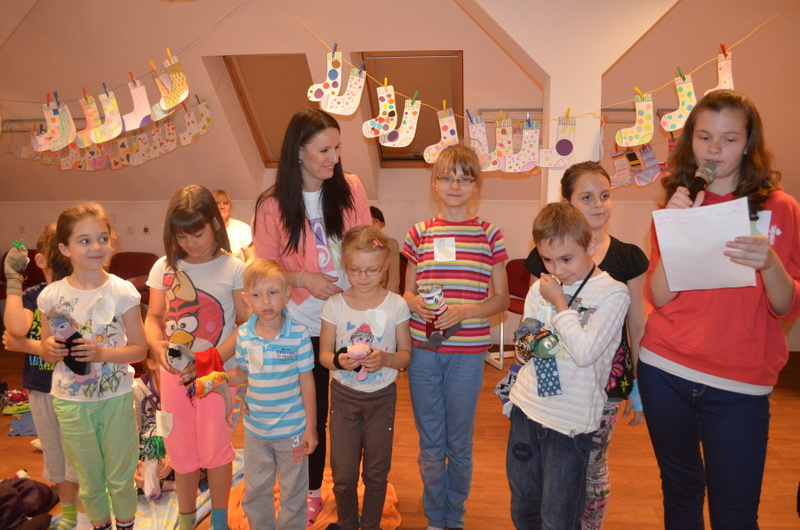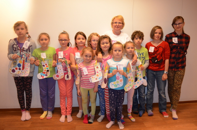 Dzieci, obejrzały również interesujące prezentacje multimedialne, m.in. jak fantastyczne rzeczy można wyczarować z niepotrzebnych skarpet. Świetną zabawą było dla wszystkich projektowanie własnego wzoru skarpet. Powstawały fantazyjne propozycje, a dzieci wykazywały się niezwykłą wyobraźnią. Z podobnym zaangażowaniem przystąpiono do tworzenia niedoparkowych familii. Każda z grup tworzyła własną rodzinę, nadawała wymyślne imiona Niedoparkom, wchodzącym w jej skład, a swoje prace z dumą prezentowała reszcie uczestników. Przez całe spotkanie uśmiech nie schodził z dziecięcych twarzy, również podczas poczęstunku oraz konkursu na spostrzegawczość. Wyjątkową atrakcją było głośne czytanie przy świecach, oczywiście niedoparkowych historii.