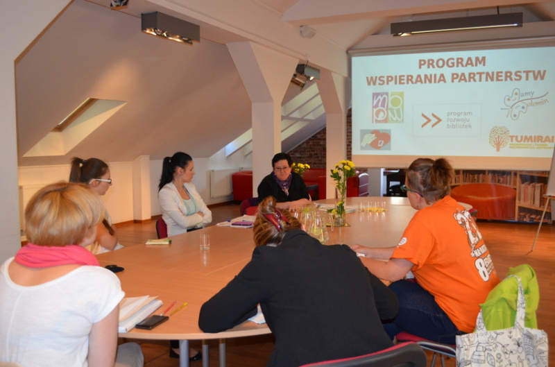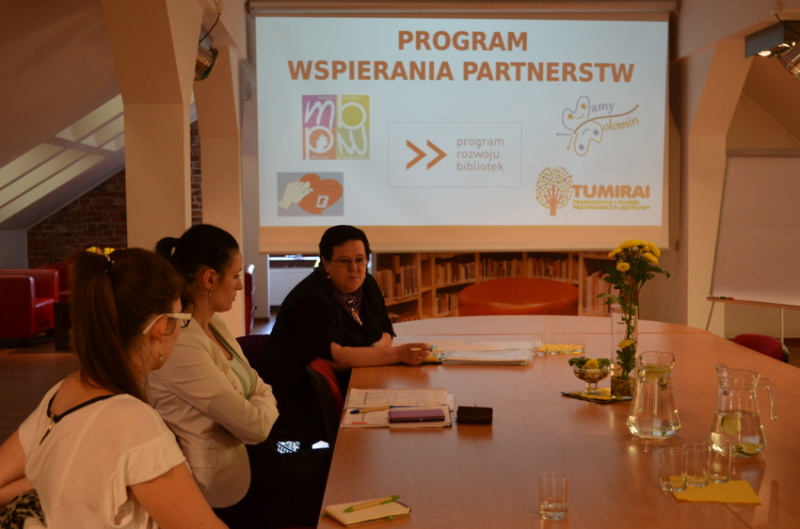 We wtorek, 24 czerwca, gościliśmy z pierwszą wizytą naszą opiekunkę projektu, Barbarę Bębską. W spotkaniu uczestniczyli pracownicy biblioteki z dyrektor na czele oraz przedstawicielki dotychczasowych partnerskich instytucji: Młodzieżowego Szkolno-Parafialnego Wolontariatu „Otwarte serce” oraz Fundacji Mamy Wołomin. Na spotkaniu obecna była również reprezentantka przedszkola Tumirai, które również zaprosiliśmy do współpracy.