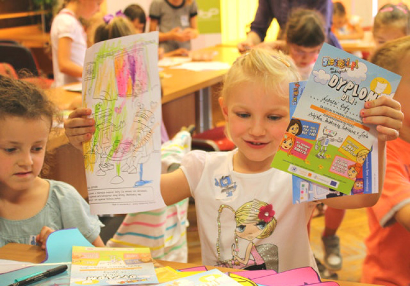 Najmłodsi wysłuchali głośnego czytania o przygodach małego konstruktora Jasia i jego przesympatycznym robocie Necio oraz przenieśli się do świata wiedzy i dobrej zabawy, by poczuć się bezpiecznym w sieci. Dzięki aktywnemu udziałowi w quizie dowiedzieli się czym jest android, jak nazywa się internetowa skrzynka pocztowa i złośliwy program, który może zawładnąć komputerem. Mali adepci wiedzy o wirtualnym świecie nauczyli się jak reagować na zagrożenia w Internecie i ich unikać, przekonali się czym jest netykieta i odpowiedzieli na pytanie czy internetowe znajomości są bezpieczne. Odpowiedzi znaleźli układając gigantyczne puzzle z zasadami bezpiecznego korzystania z Internetu. Wakacyjne spotkanie z Sieciakami zakończyła wizyta w Sieciakowej Strefie Rozrywki, gdzie rebusy, misje i quizy pozwoliły im lepiej poznać możliwości Internetu.
