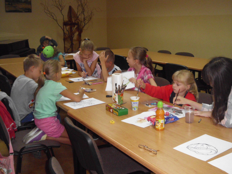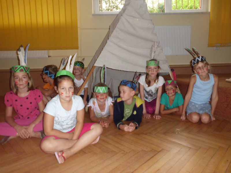 Sierpień rozpoczął się tygodniem skandynawskim. Dzieci spotkały się z baśniami Hansa Christiana Andersena i wykonały do nich ilustracje. Na zajęciach komputerowych poszukały informacji na temat jednego z państw skandynawskich – Szwecji. Następnie wyjechały w podróż do Ameryki, gdzie wcieliły się w rdzennych mieszkańców tego kontynentu: wybudowały indiańską wioskę, ozdobiły swoje stroje indiańskimi pióropuszami, wzięły udział w indiańskich zabawach – wyścigach w workach czy rzucaniu do celu.