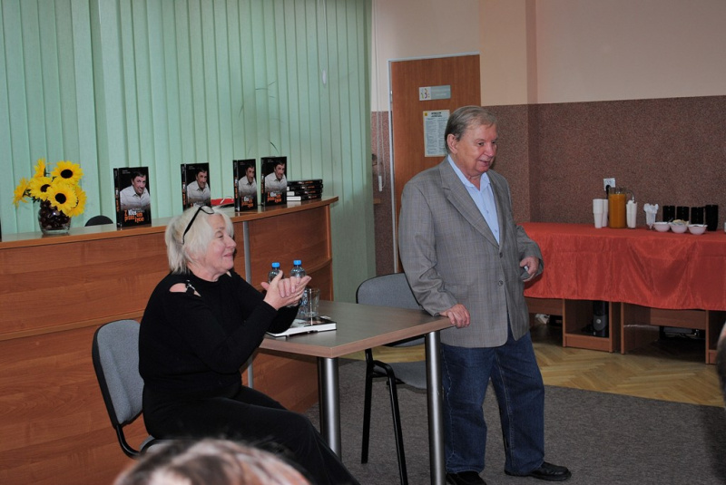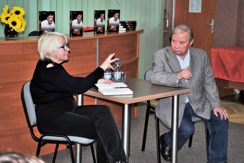 Spotkanie przybrało formę rozmowy, którą z panem Romanem prowadziła Jagoda Opalińska, wieloletnia przyjaciółka państwa Kłosowskich. Usłyszeliśmy kilka zabawnych anegdot z życia artysty. Rozmowa była też przeplatana fragmentami książki. W trakcie spotkania Pan Roman dał również próbkę swego talentu, recytując kilka ulubionych wierszy Tuwima i Broniewskiego.