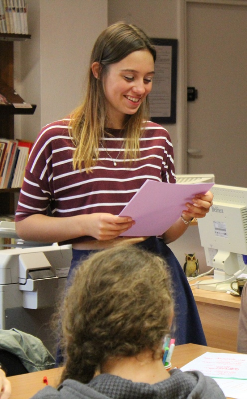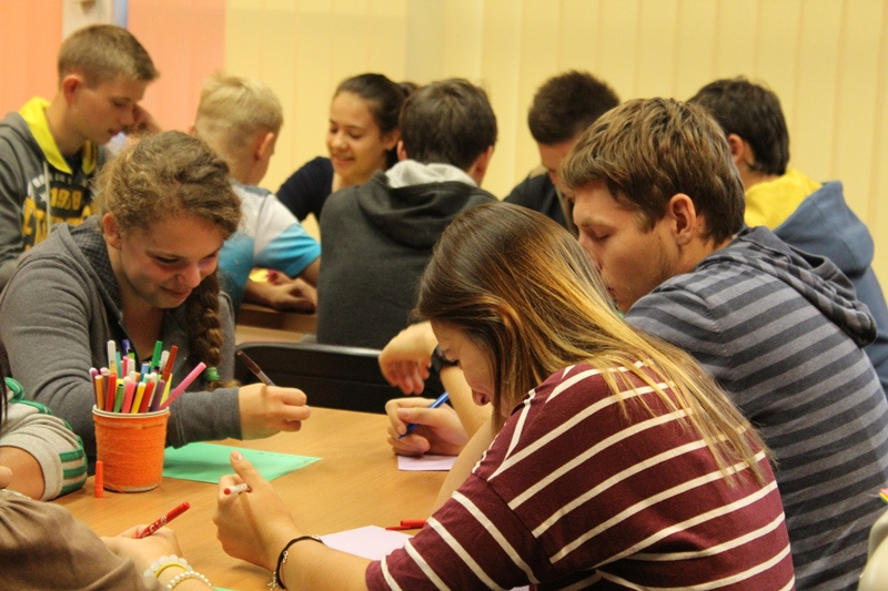 Młodzież uczestnicząca w warsztatach „Dobrze po-wiedzieć” zmierzyła się z językowymi niuansami i zagadkami. Uczestnicy odnajdywali znaczenia związków frazeologicznych, szukali nacechowanych ekspresyjnie odpowiedników często używanych wyrazów, porównywali style mówienia.