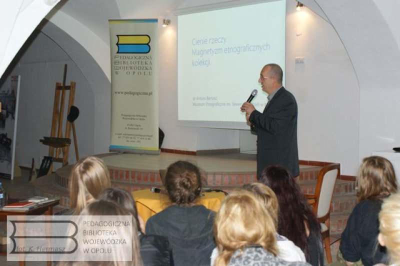 Pedagogiczna Biblioteka Wojewódzka w Opolu i Zespół Państwowych Placówek Kształcenia Plastycznego im. Jana Cybisa w Opolu gościła dr. Antoniego Bartosza, dyrektora Muzeum Etnograficznego w Krakowie. Wygłosił On wykład "Cienie rzeczy. O magnetycznie etnograficznych kolekcji", w ramach obchodów Roku Kolberga. Zapraszamy do fotorelacji.