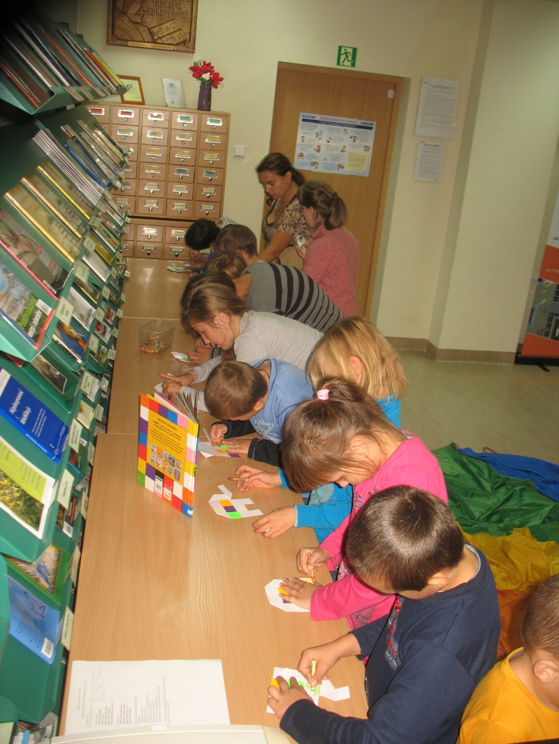 W dniach 6-10 października 2014 roku Biblioteka Pedagogiczna w Ostrołęce Filia w Przasnyszu zorganizowała akcję z wykorzystaniem elementów biblioterapii i pedagogiki zabawy pt. „Jesień z Elmerem” dla uczniów „zerówek” i klas I-III.