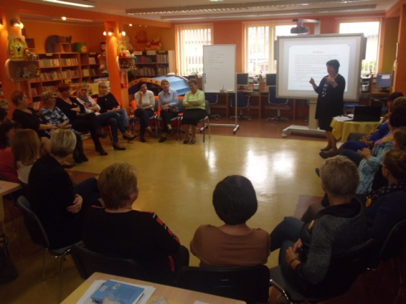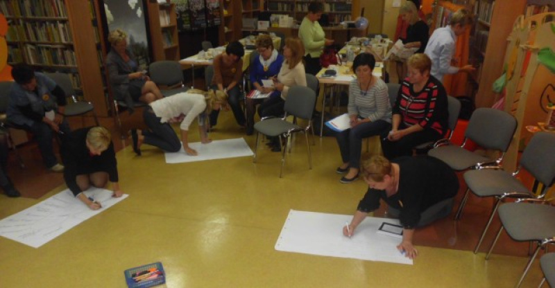 W trakcie wizyty omówiono usługi dla różnych grup mieszkańców – dostęp do kultury i edukacji, rozwój osobisty i zawodowy mieszkańców gminy, rozwój kompetencji pracowników, zarządzanie projektami oraz promocja i rzecznictwo na rzecz biblioteki. Dyskutowano o potrzebach lokalnej społeczności, o możliwościach i sposobach pozyskiwania grantów umożliwiających realizację i poszerzenie działalności kulturalnej. Zapoznano też uczestników z zabawami muzyczno-ruchowymi wg metody KLANZA, które mogą być wykorzystane np. w czasie lekcji bibliotecznych czy zajęć świetlicowych. Część warsztatową poprowadziła Alicja Banaszek z wielkopolskiego Rozdrażewa, absolwentka Szkoły Trenerskiej STOP-PRB. Przedstawiony temat „Profesjonalny bibliotekarz” jak najbardziej bliski uczestnikom – był okazją do poruszenia problemów występujących w pracy zawodowej bibliotekarzy czy podzieleniem się dotychczasowym doświadczeniem związanym z promocją biblioteki, książki i czytelnictwa.