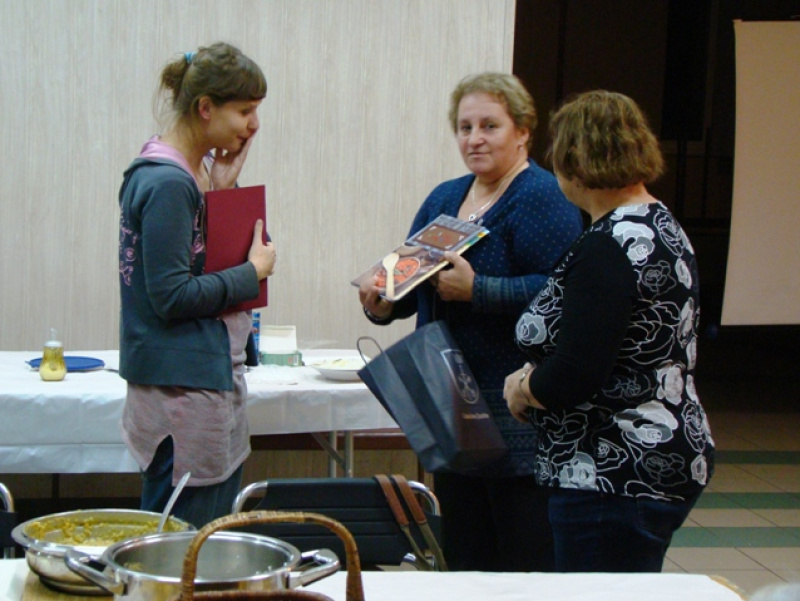 Podczas spotkania mogłyśmy, obejrzeć film, poznać losy kobiet, zobaczyć na planszach małe przedsiębiorstwa, którymi zarządzają Lankijki, poznać ich codzienne życie, to czym się zajmują i gdzie mieszkają. Uczyłyśmy się także gotować jedną z potraw tradycyjnych z kuchni lankijskiej – soczewicę z ryżem i curry a organizatorzy poczęstowali nas polską starodawną zupę ziemniaczaną z miętą.