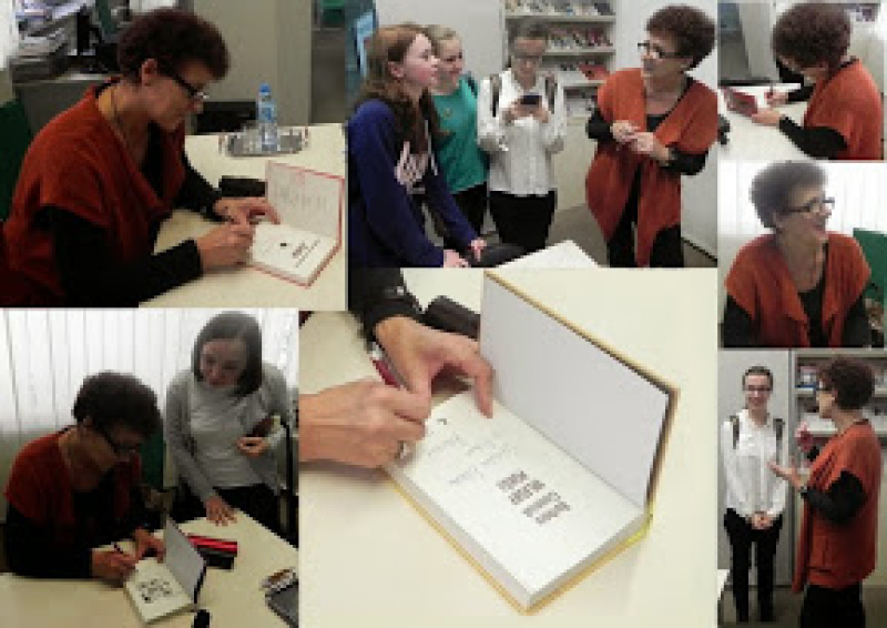W spotkaniu uczestniczyli uczniowie z wieluńskich szkół gimnazjalnych. Mieli oni okazję zakupić książkę z autografem autorki.