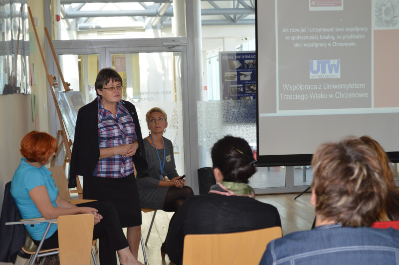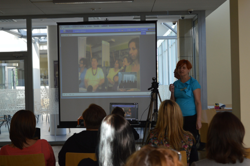 Po praktycznych warsztatach przyszedł czas na prezentację doświadczeń biblioteki w Chrzanowie. Chcieliśmy pokazać jak radzić sobie z podstawowymi problemami na jakie napotyka bibliotekarz podczas przekładania pomysłu na działanie, czyli z brakiem czasu i pieniędzy. Na przykładzie zrealizowanych projektów przedstawiliśmy różne źródła zewnętrznego finansowania działań biblioteki. Wybraliśmy się na wirtualną wycieczkę do fili w Płazie, gdzie trwa przebudowa finansowana z programu Biblioteka +. Bibliotekarze poznali, zaproszonych na wizytę, naszych partnerów, dzięki którym możemy wzbogacać ofertę kulturalną. On-line połączyliśmy się z filią w Pogorzycach, gdzie lokalna społeczność opowiadała o współpracy z biblioteką.