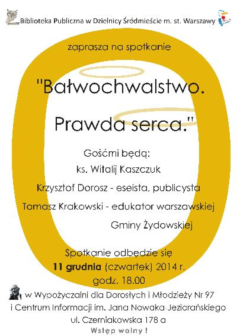 Spotkanie odbędzie się 11 grudnia 2014 (czwartek) o godz. 18:00 w Centrum Informacji im. Jana Nowaka-Jeziorańskiego ul. Czerniakowska 178a