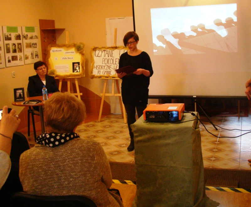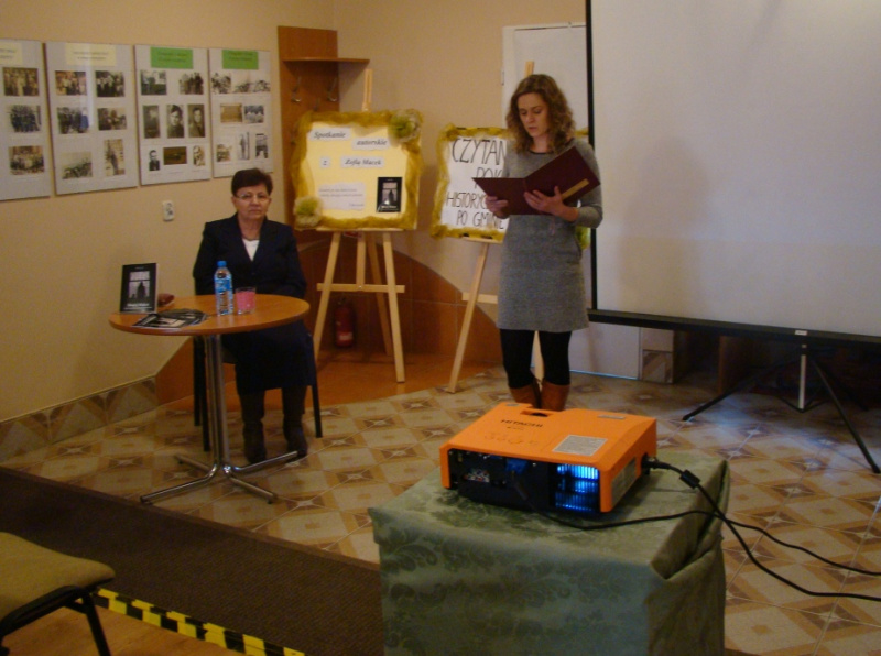 Spotkanie autorskie wzbogacone zostało prezentacją multimedialną przygotowaną przez bibliotekarzy z elektronicznych dokumentów historycznych pozyskanych do Cyfrowego Archiwum Tradycji Lokalnej.