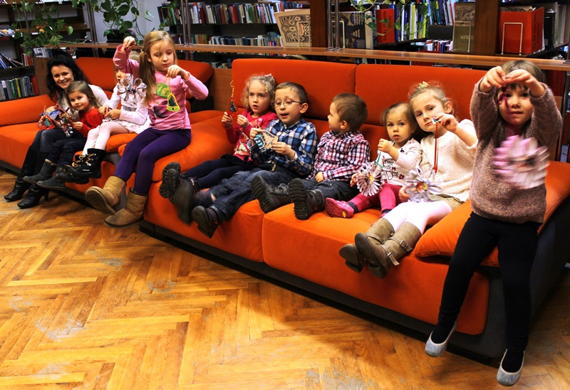 W trakcie zajęć powstały malowane choinki i kolorowe rozetki. Aby ozdoby były niepowtarzalne, ozdobiliśmy je zdjęciami z tegorocznych spotkań Klubu. Nie obyło się też bez tradycyjnego głośnego czytania – skoro nie ma śniegu, postanowiliśmy go przywołać zabawą z wierszem Danuty Wawiłow „Śnieżysko”. Obowiązkowo wszyscy też zaopatrzyli się w Oddziale dla Dzieci w świąteczne lektury. Wypożyczone książki oraz małe świąteczne upominki sprawią, że święta wszystkich Klubowiczów będą prawdziwie rozczytane.