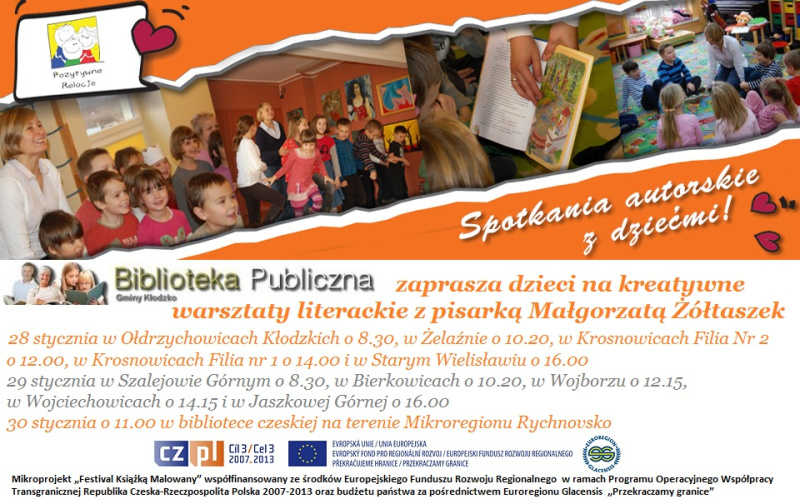 Działanie realizowane było w ramach mikroprojektu „Festival Książką Malowany”, współfinansowany ze środków Europejskiego Funduszu Rozwoju Regionalnego w ramach Programu Operacyjnego Współpracy Transgranicznej Republika Czeska- Rzeczpospolita Polska 2007 -2013 oraz budżetu państwa za pośrednictwem Euroregionu Glacensis „Przekraczamy granice”.