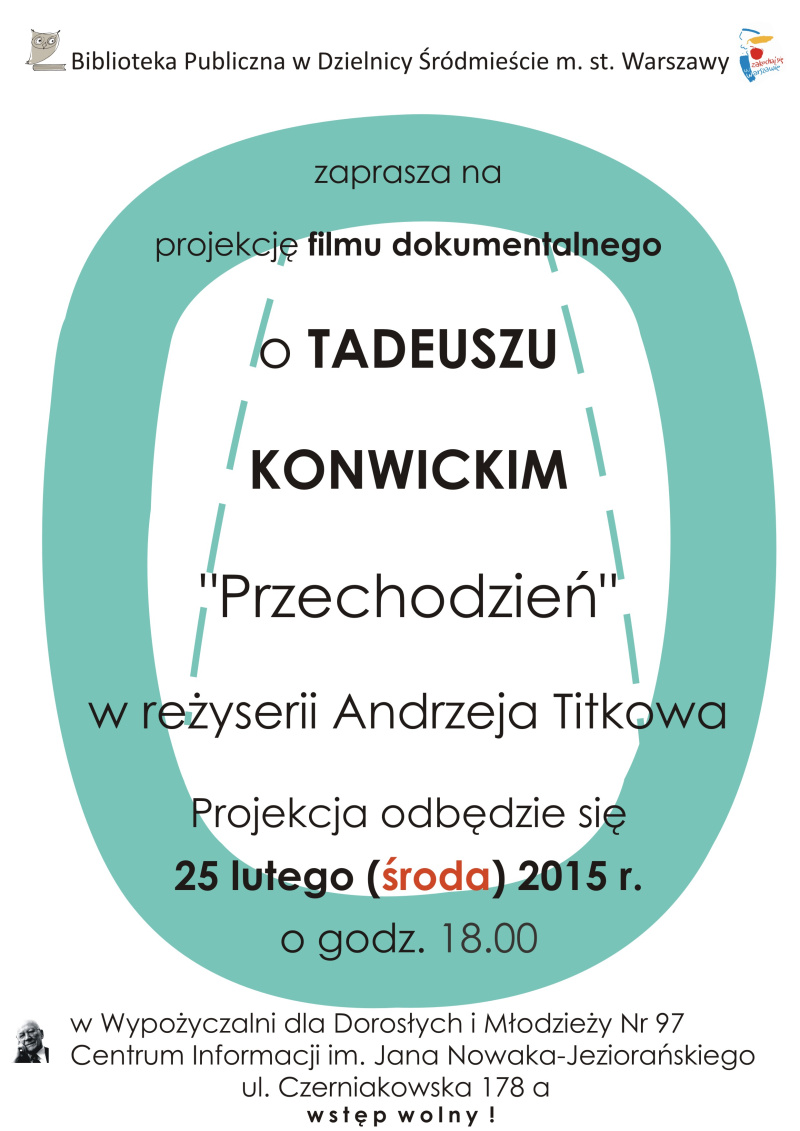 na projekcję filmu dokumentalnego o TADEUSZU KONWICKIM