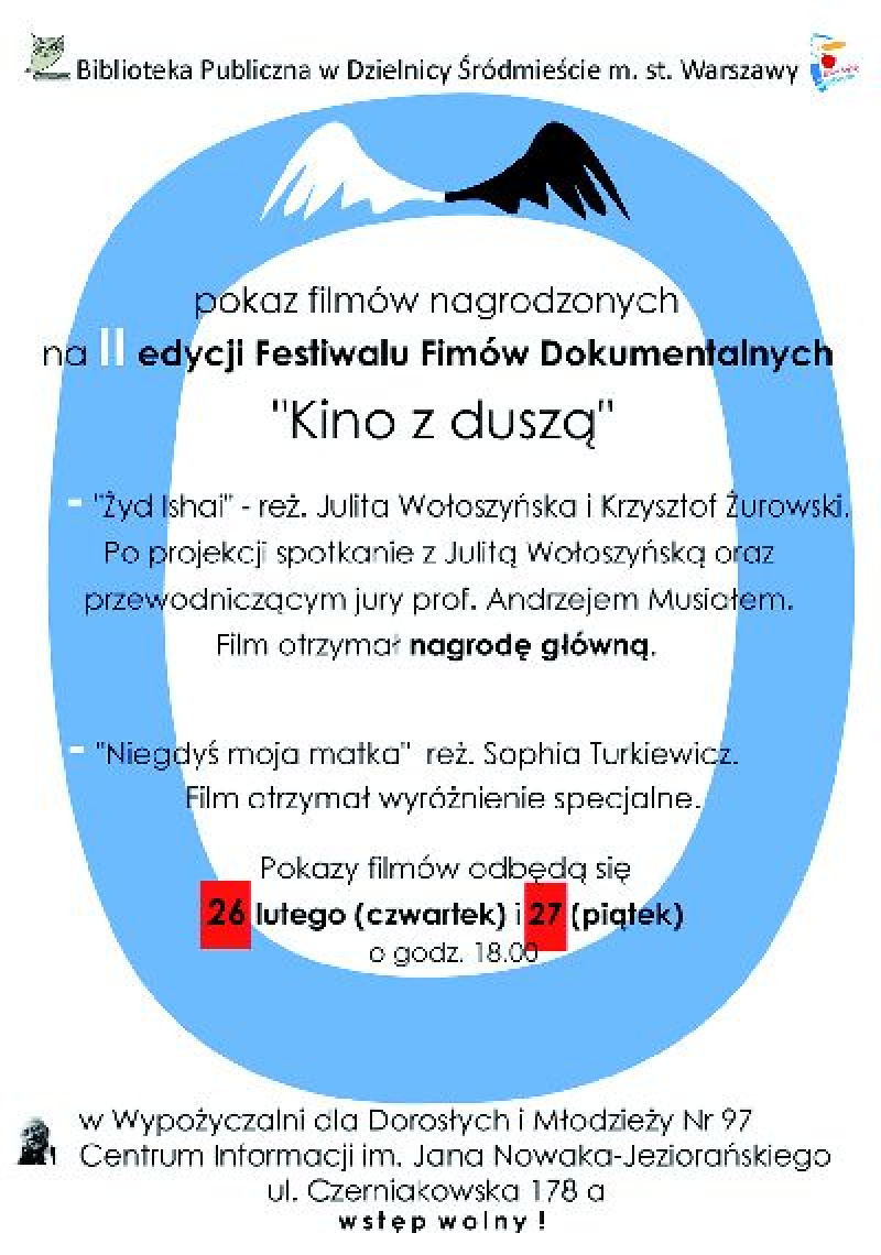na pokaz filmów nagrodzonych na II edycji Festiwalu Filmów Dokumentalnych "Kino z duszą".