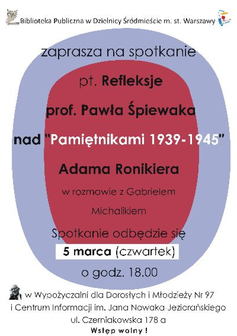 Zapraszamy w najbliższy czwartek do Centrum Informacji im. Jana Nowaka-Jeziorańskiego ul. Czerniakowska 178a. Wstęp wolny.