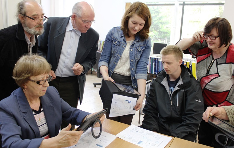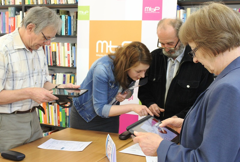 Natomiast podczas zajęć Biblioteka 3D, uczestnicy poznali aplikacje wykorzystujące rzeczywistość rozszerzoną – m.in.: Spacecraft 3D, który pozwala oglądać trójwymiarowe modele statków kosmicznych czy Anatomy 4D dzięki której możemy zgłębić tajniki anatomii a nawet obejrzeć bijące serce. Sporo kreatywnego zaskoczenia wybudziła aplikacja Elements 4D, w której niepozorne papierowe kostki, po odczytaniu kodu przez tablet, zamienią się w związki chemiczne! Dużo się dziś nauczyłem – opowiada pani Wiesław, uczestnik zajęć – aplikacje 3D to świetna sprawa.