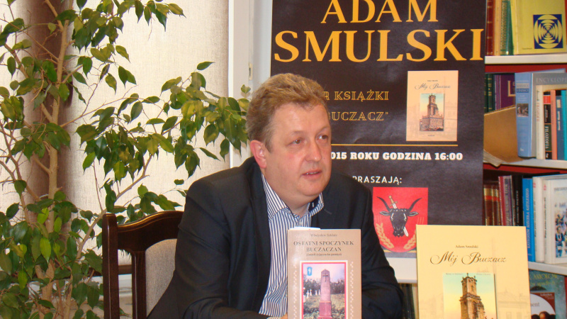 Autor albumu rozpoczął spotkanie od przedstawienia swojej osoby i swoich związków z Kresami. Dowiedzieliśmy się, że jest potomkiem repatriantów z Kresów Rzeczpospolitej – jego dziadek Władysław Smulski wraz z całą rodziną został wywieziony w sierpniu 1945 z Dobropola pod Buczaczem na Dolny Śląsk. Adam Smulski poszukując swoich korzeni uległ fascynacji miastem swoich przodków i postanowił poznać jego historię. Zaczął od zbierania informacji i publikacji na temat Buczacza, a następnie z kolekcjonerskim zacięciem zaczął zbierać stare widokówki z Buczacza i okolic. Z czasem jego wiedza na temat Buczacza jak i kolekcja pocztówek rozrastała się i autor postanowił podzielić się swoją pasją i pokazać pocztówki szerszej publiczności. Zostały one zaprezentowane w formie wernisażu podczas VII Dni Lwowa w siedzibie Wojewódzkiej Biblioteki Publicznej. W roku 2014 pocztówki te zostały wydane w formie albumu. Poprzez pryzmat tychże pocztówek oraz starych fotografii i dokumentów książka ukazuje historię podolskiego miasta. Książka „Mój Buczacz” ukazała się na fali wielkiego ostatnio zainteresowania dziejami miasteczek kresowych. Po latach przemilczeń Polacy odkrywają swoje rodzinne korzenie w miasteczkach, które niegdyś należały do Polski, a dziś leżą poza jej granicami w trzech państwach: na Ukrainie, Białorusi i Litwie.