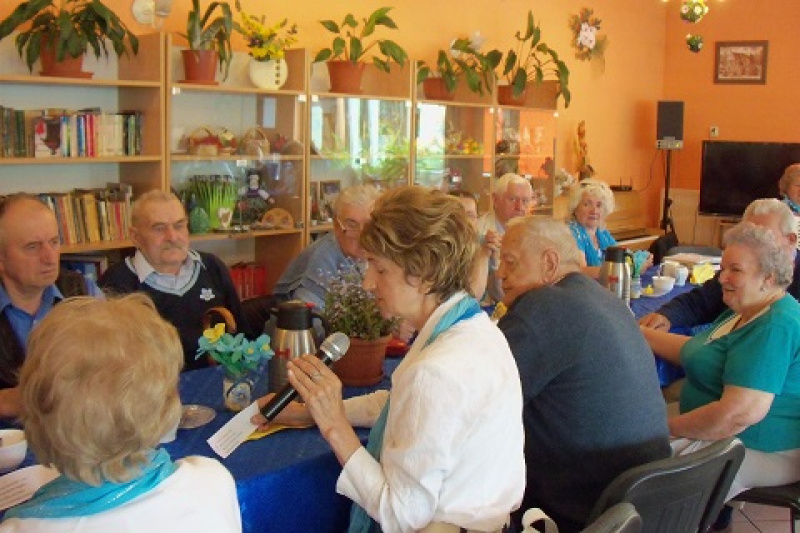 Święto Polskiej Niezapominajki obchodzone jest w Dziennym Domu Seniora juz od kilku lat. W tym roku, w ramach Tygodnia Bibliotek do organizacji święta włączyła się Powiatowa Biblioteka Publiczna i Biblioteka Pedagogiczna. Bibliotekarki wspólnie przygotowały zagadki, gry sportowe wiersze i wiele innych atrakcji dla pensjonariuszy.