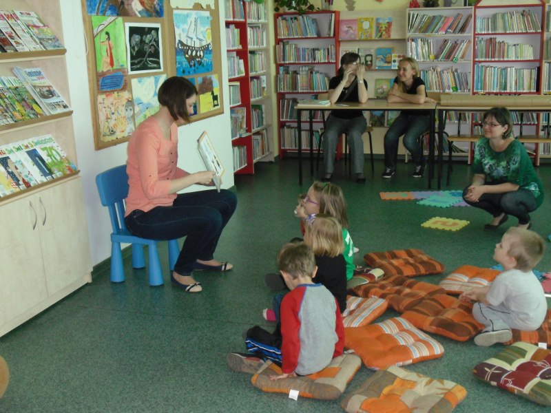 13 maja pani bibliotekarka odwiedziła przedszkola we Frydku i Gilowicach. Tematem poprzednich spotkań były zwierzęta (kot, słoń, kura). Tym razem przeczytana bajeczka dotyczyła pieska. Bohater Miko pomagał swojej sąsiadce w opiece nad pieskiem. Również przedszkolaki wiedziały, jak należy zajmować się psem. Na zakończenie zajęć dzieci otrzymały potworkowe zakładki do książek, które własnoręcznie ozdobiły.