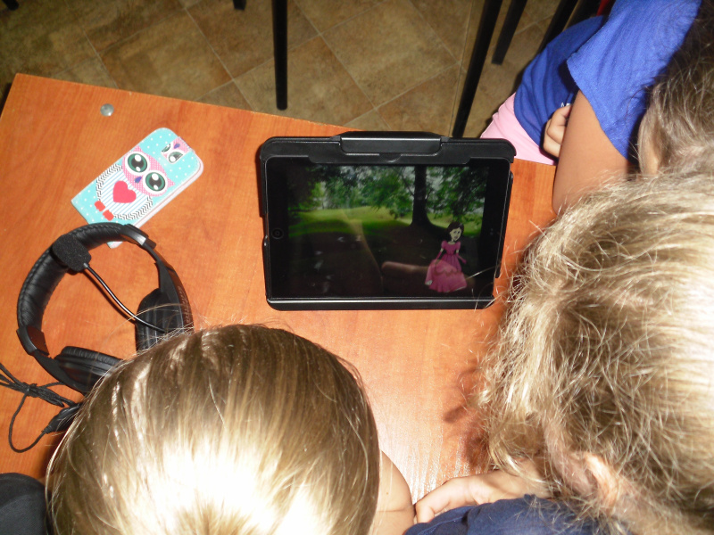 Również 12 maja uczniowie klasy V Zespołu Szkół w Miedźnej poznawali tablety. Dzięki aplikacji „Puppets Pals” dzieciaki mogły stworzyć i nagrać własne przedstawienie kukiełkowe. Spośród bajkowych postaci (księżniczka, rycerz, kruk, itp.) należało wybrać kilka i wymyślić fabułę scenki. Prosta aplikacja dostarczyła im wiele emocji i śmiechu. Drugie spotkanie z „Puppets Pals” odbyło się 19 maja.