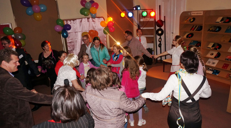 Bibliotekarze zaprosili gości na potańcówkę z wodzirejem i z przebojami Maryli Rodowicz, Jerzego Połomskiego czy ABBY. A wszystkie bawiące się kobiety otrzymały po czerwonym goździku z bibuły.