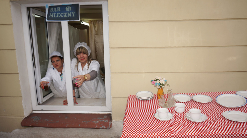 Peerelowskie makijaże i ubiory, czerwone krawaty egzekutywy, "pan Mieciu" który przykazywał, „żeby mu tam błota nie nanosić”, babcia klozetowa, która rozdawała papier toaletowy i lizaki – jednym słowem blaski i cienie PRL-u.