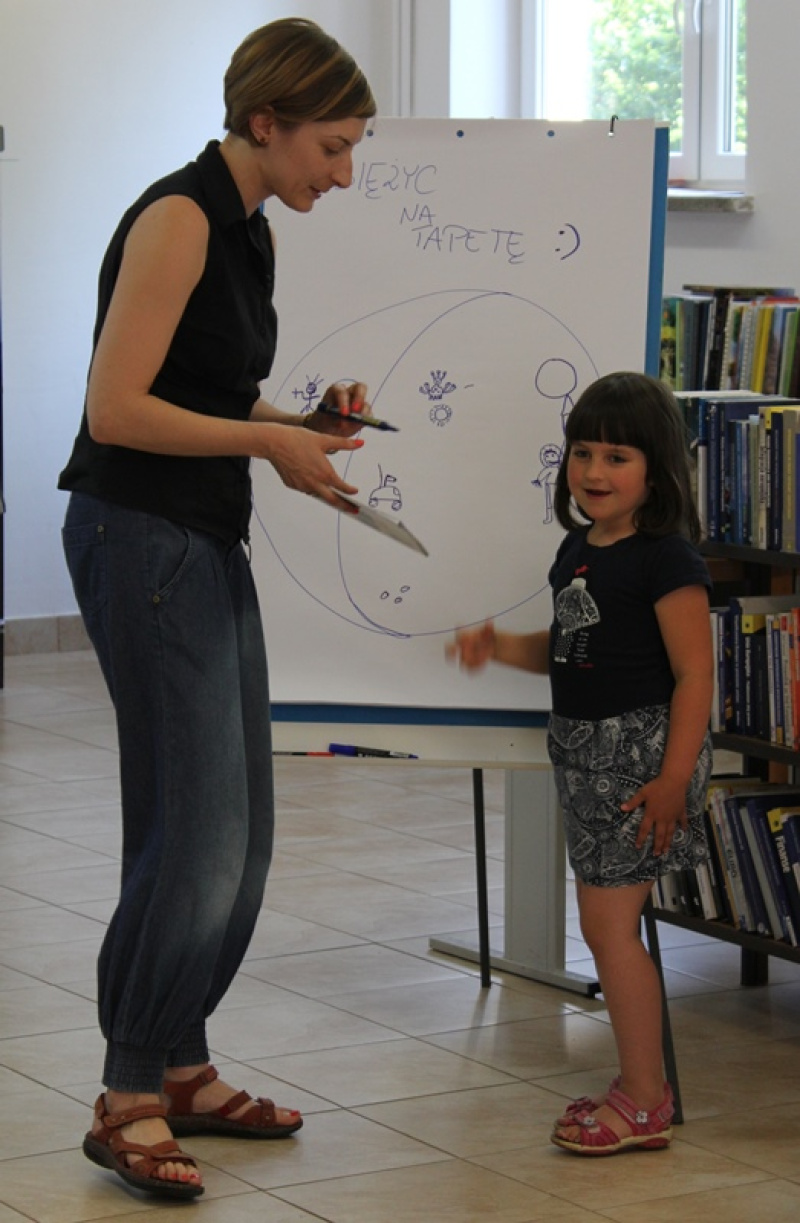 Dzieci z MBP w Jaśle wraz z prowadzącą warsztaty Dorotą Woźnicą przetestowały jedną z projektowych propozycji zajęć i wraz z bohaterami książki Ewy Nowak „Apollo 11” i scenariusza Katarzyny Zabłockiej „Księżyc na tapetę” udały się w podróż po bibliotece, która na ten czas zamieniła się w przestrzeń kosmiczną. Emocji, doświadczeń i nowej wiedzy było co nie miara, a efekty bibliotecznej misji kosmicznej oraz kolejne zajęcia w ramach akcji „Czytam sobie w bibliotece” poznamy jesienią.