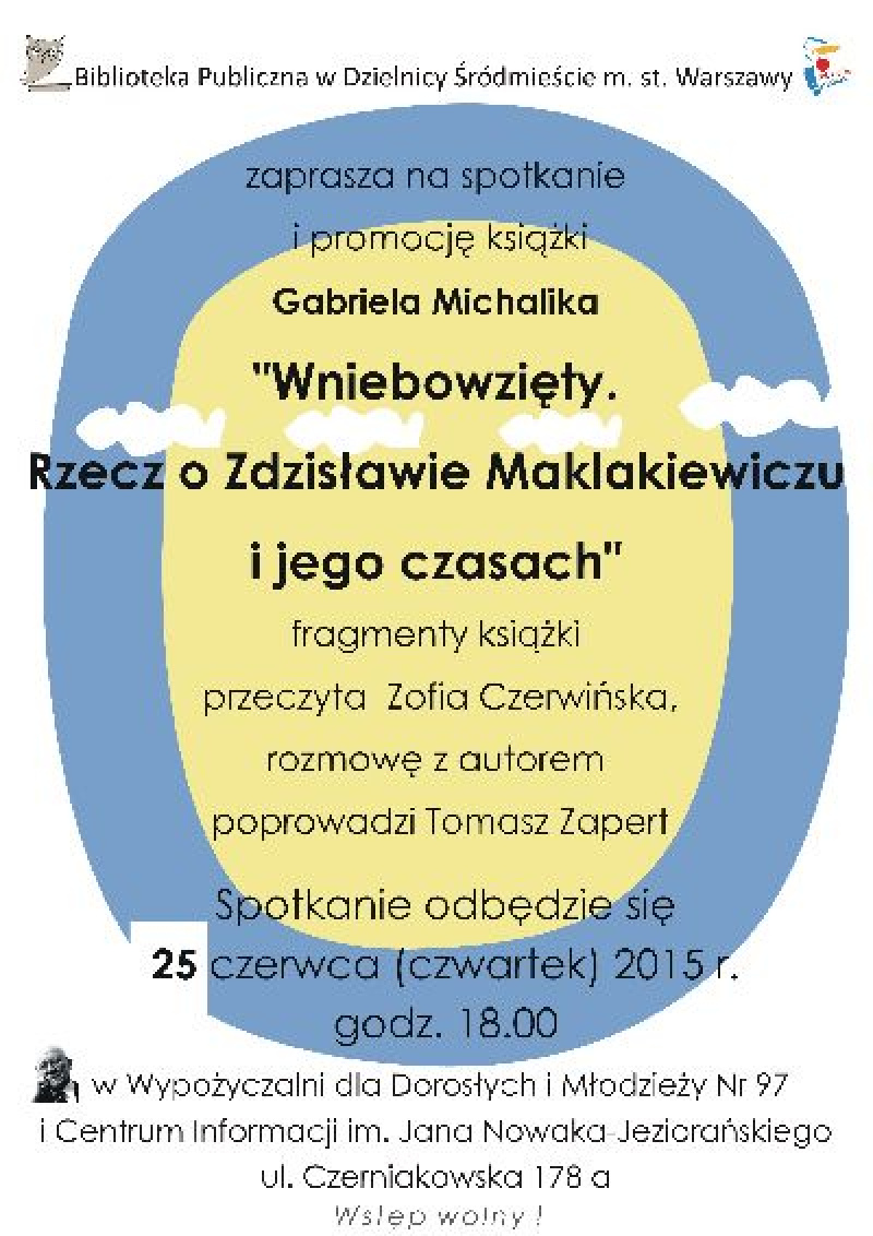 na spotkanie i promocję książki Gabriela Michalika pt. "Wniebowzięty. Rzecz o Zdzisławie Maklakiewiczu". Fragmenty książki przeczyta Zofia Czerwińska, rozmowę z autorem poprowadzi Tomasz Zapert.