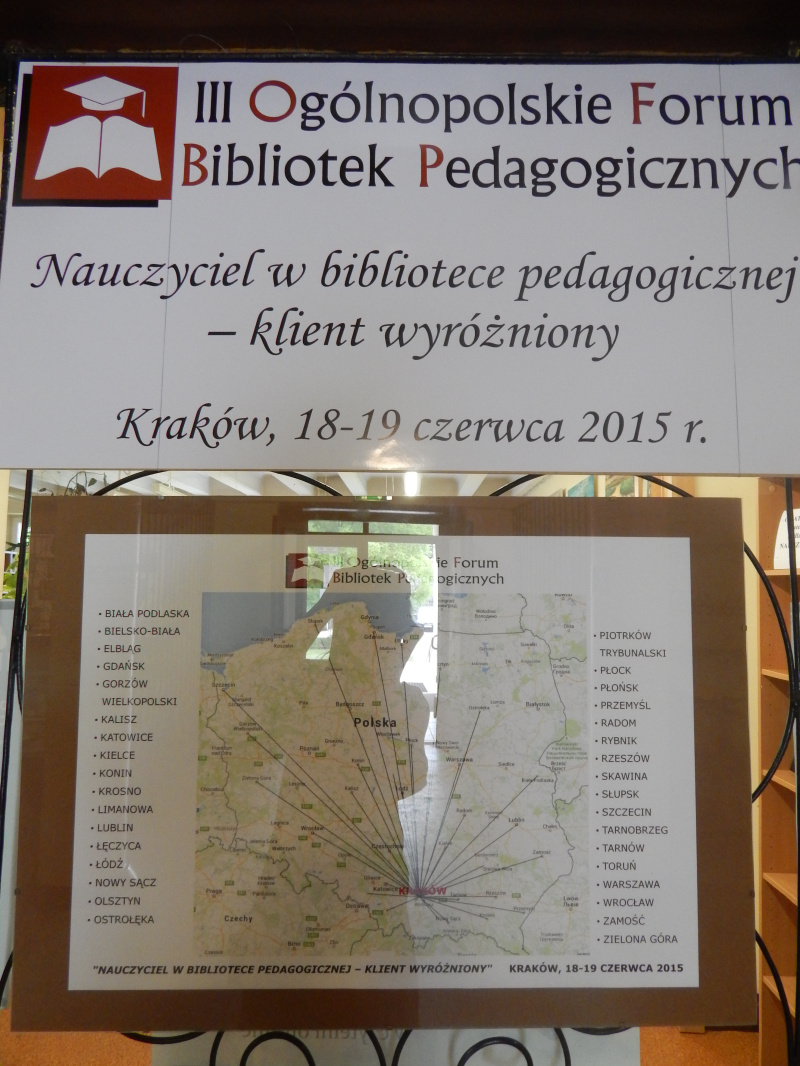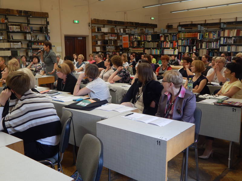 w Krakowie przedstawiła wyniki badań dotyczących zagadnienia - czego nauczyciel oczekuje od biblioteki pedagogicznej? Konkretne działania serwisu E-Pedagogiczna SBP na rzecz wspomagania szkół i bibliotek zaprezentowały Agata Arkabus i Anna Płusa z Sekcji Bibliotek Pedagogicznych i Szkolnych Stowarzyszenia Bibliotekarzy Polskich. Grażyna Leonowicz, Wicedyrektor Pedagogicznej Biblioteki Wojewódzkiej w Warszawie, objaśniła założenia projektu "Analiza Funkcjonowania Bibliotek". Cele i zadania ogólnopolskiej sieci bibliotekarzy bibliotek pedagogicznych omówiła Elżbieta Mieczkowska z Warmińsko-Mazurskiej Biblioteki Pedagogicznej w Elblągu. Ostatni referat dotyczył innowacyjnych narzędzi prezentacji i publikacji treści (Prezi, Scribus, Platforma Issuu) - do wykorzystywania nowoczesnych, bezpłatnych aplikacji w pracy nauczyciela bibliotekarza przekonywała Wioletta Jednaka z Ogólnopolskiego Centrum Doskonalenia Nauczycieli w Krakowie.