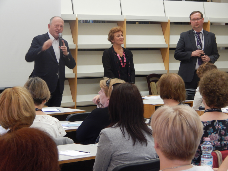 Konferencję otworzyła mgr Wanda Dudek, Dyrektor Pedagogicznej Biblioteki Wojewódzkiej w Krakowie wraz z dr. Michałem Rogożem, Dyrektorem Instytutu Informacji Naukowej i Bibliotekoznawstwa Uniwersytetu Pedagogicznego w Krakowie. Swoją obecnością zaszczycił nas Członek Zarządu Województwa Małopolskiego Leszek Zegzda, który podkreślił ważną rolę społeczną i kulturową bibliotek oraz przedstawił założenia projektu Małopolskiego Centrum Dydaktyki Cyfrowej, w którym ma uczestniczyć m.in. Pedagogiczna Biblioteka Wojewódzka w Krakowie.