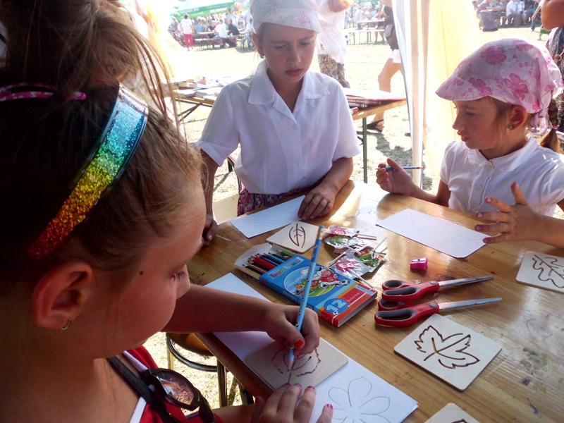 W czasie zajęć plenerowych najmłodsi, wspierani przez bibliotekarki Agatę, Izę i Ewę oraz rodziców, poznali co to jest drewno? Co się z niego produkuje? W jaki sposób możne je powtórnie wykorzystać?. Rekwizyty, które biblioteka otrzymała w ramach projektu wywołały u dzieci ogromne zainteresowanie prowadzonymi zajęciami. Najbardziej spodobały im się serca wykonane z płyty MDF, które trzeba było dorabiać „na poczekaniu” z kartonu (ten też przecież pochodzi od drewna). Dużym zainteresowaniem cieszyły się drewniane szablony z motywami liści, z których mali ekolodzy wykonywali karty do gry „memory”. Megakolorowanka przedstawiająca las zyskała uznanie głównie wśród dziewczynek. Natomiast klocki były wspaniałym wstępem i zachętą do zajęć, które obiecywały „coś, co nie ma końca…”.